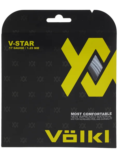 V-Star is a smooth finish co-polymer string using advanced material technology. It offers outstanding durability and tension maintenance. Most played will find it to be one of the softest co-polymer strings on the market today. The wide range of gauges and soft feel make it easy to find the V-Star right for nearly any player. Players looking for one of the softest polys on the market with good spin and control should give V-Star a try!